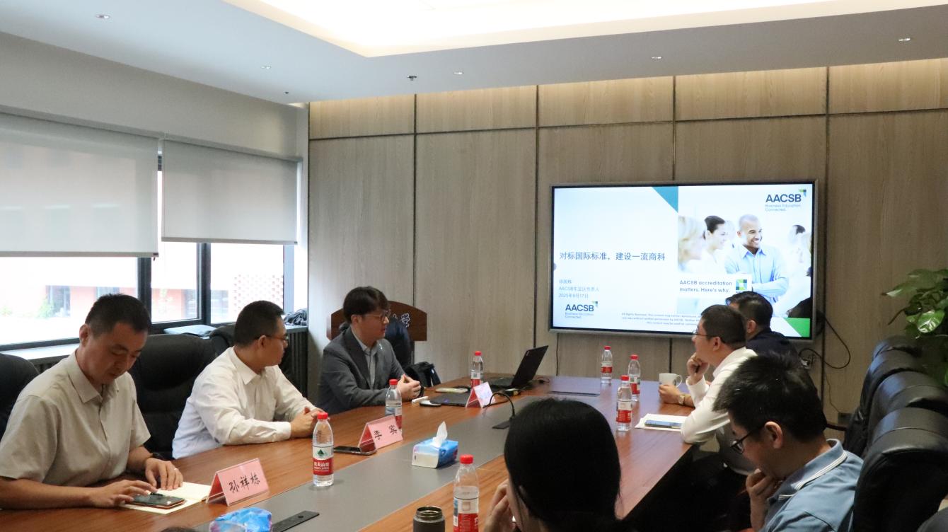 On September 17, 2025, the School of Economics and Management of Beijing University of Chemical Technology (BUCT) held an AACSB Accreditation Mobilization Meeting in the Changping Campus. Present at the meeting were Li Bin, Dean of the School of Economics and Management of BUCT; Sun Xiangdong, Vice Dean; directors of various departments and centers; and Xu Guodong, Head of AACSB East Asia.