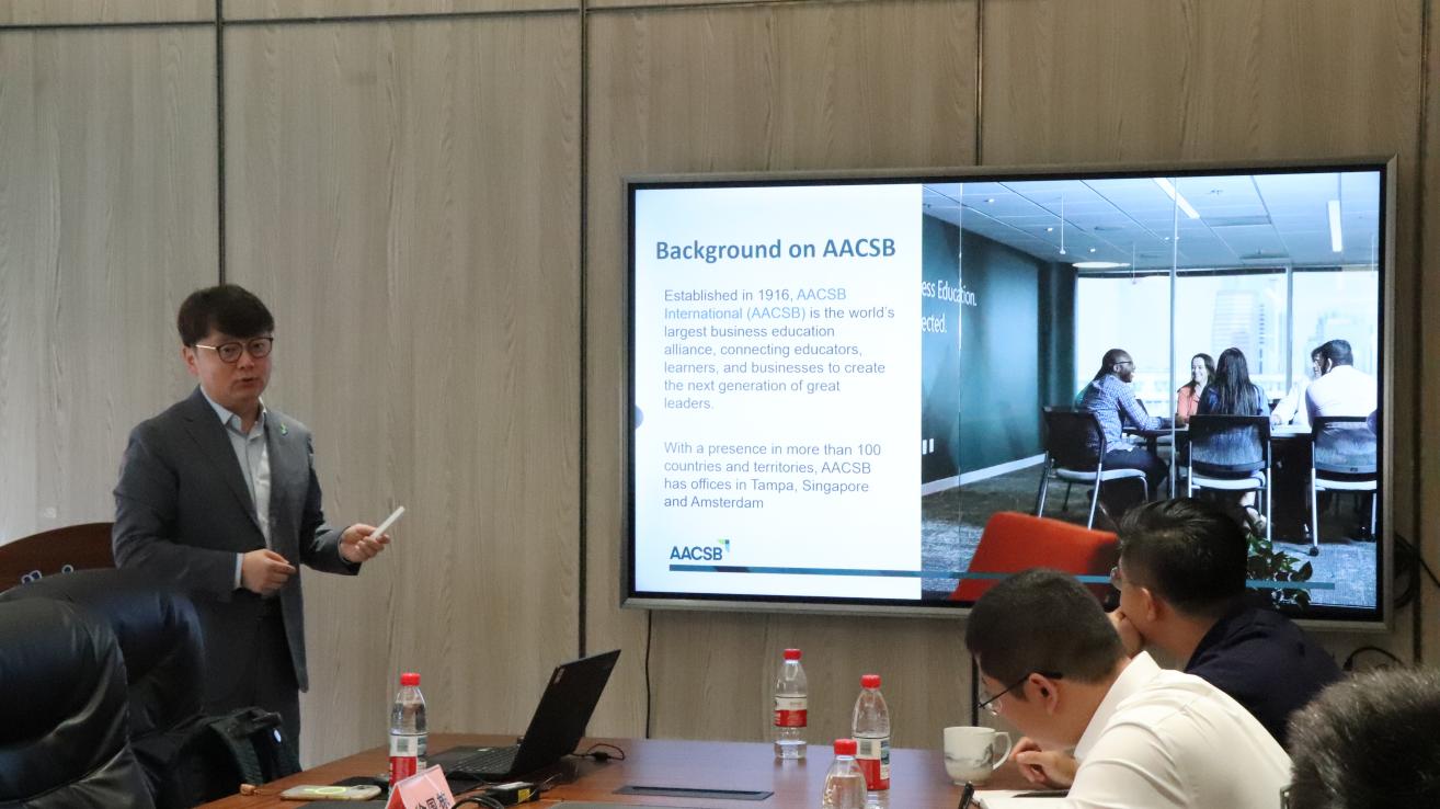 Subsequently, Xu Guodong, Head of AACSB East Asia, gave a thematic interpretation of the AACSB accreditation system. Starting from the development pattern of global business education, he systematically introduced the core positioning of AACSB accreditation, sorted out the overall progress of AACSB accreditation among domestic universities in detail, and conducted an in-depth interpretation of the core evaluation criteria and full-process milestones of the accreditation, providing clear guidance on the path for the school’s preparation work.