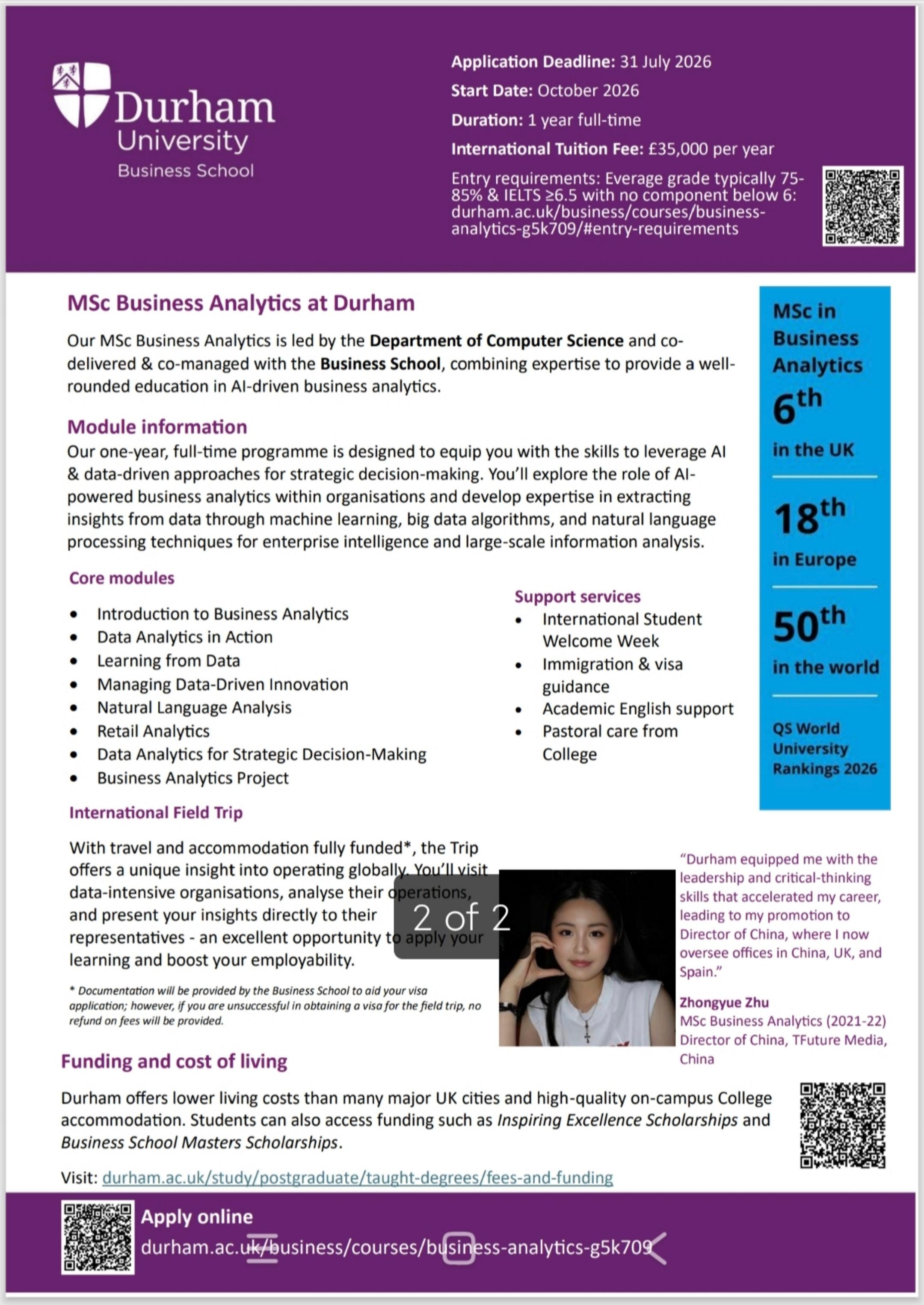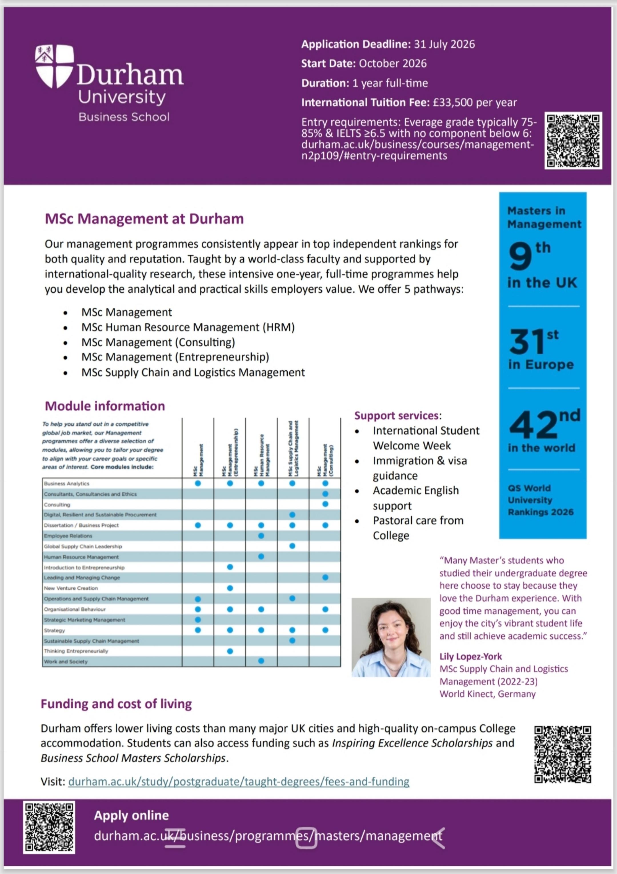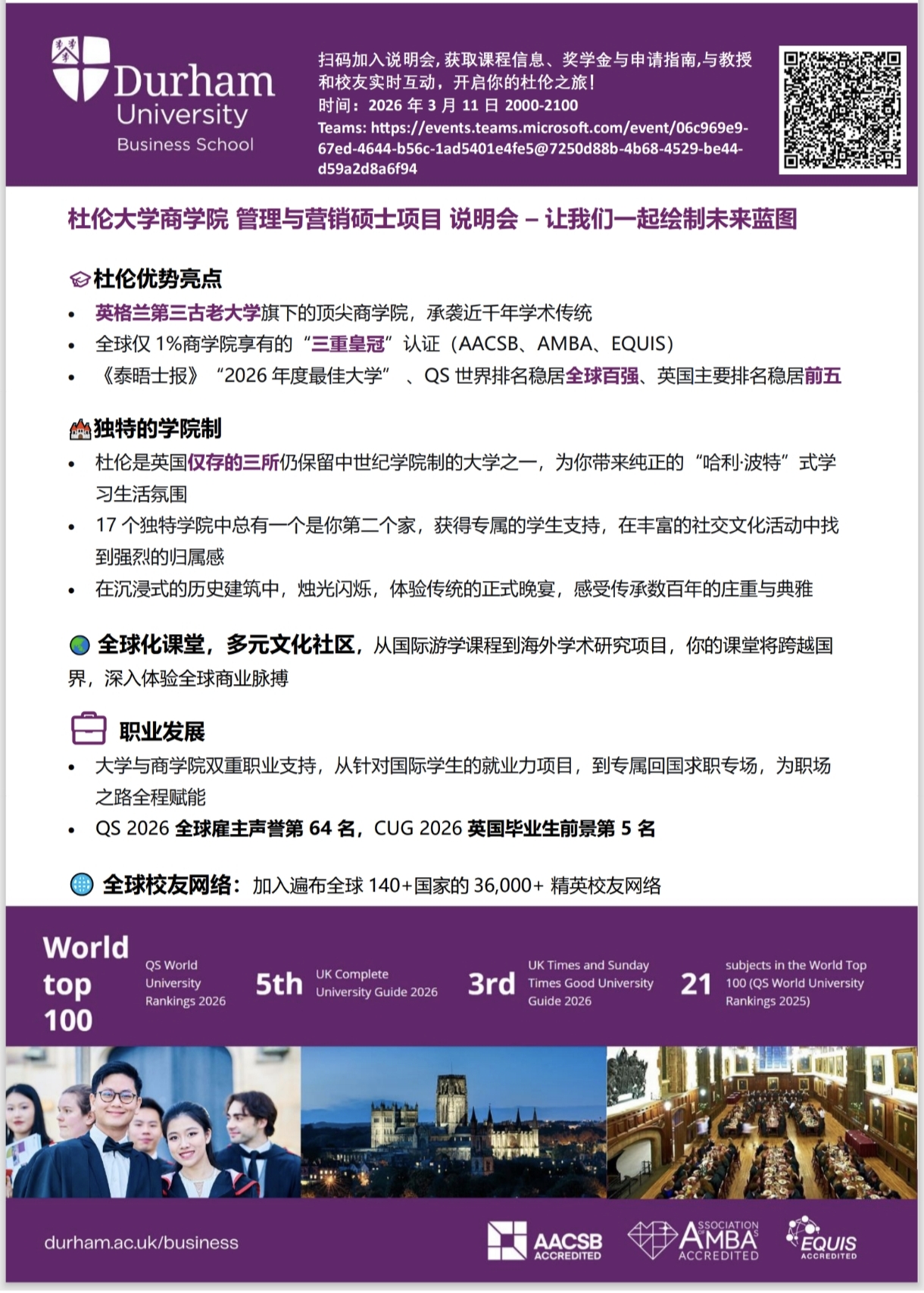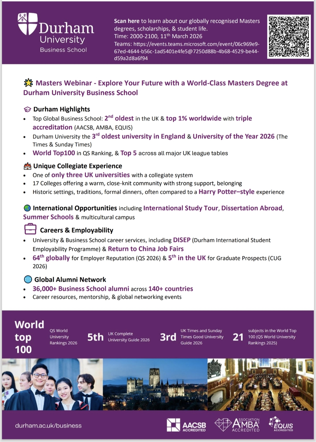 Upcoming Event: Durham University Business School Master's Programme Information Session